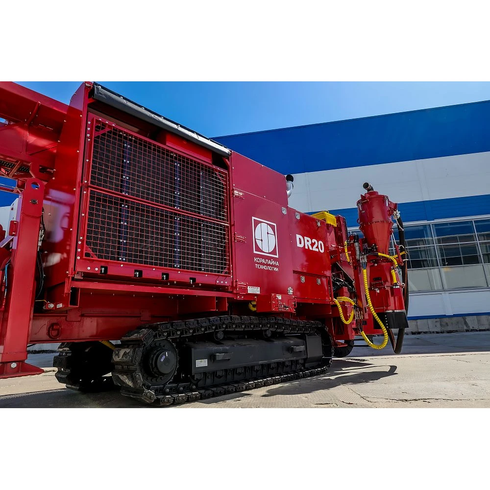 Самоходная Буровая Установка (СБУ) DR20 – компактная, маневренная буровая установка с грузоподъемностью 15 тонн, смонтированная на гусеничном шасси. СБУ оборудована палубным компрессором с регулируемой производительностью высокого давления. Независимый палубный двигатель, смонтированный на раме СБУ, обеспечивает работу гидропривода и палубного компрессора. Надежная конструкция вращателя, безопасная и эффективная работа с буровыми и обсадными трубами обеспечивают высокую производительность буровых работ при бурении скважин различного назначения на условных глубинах бурения до 350 метров с начальным диаметром бурения не более 395 мм.