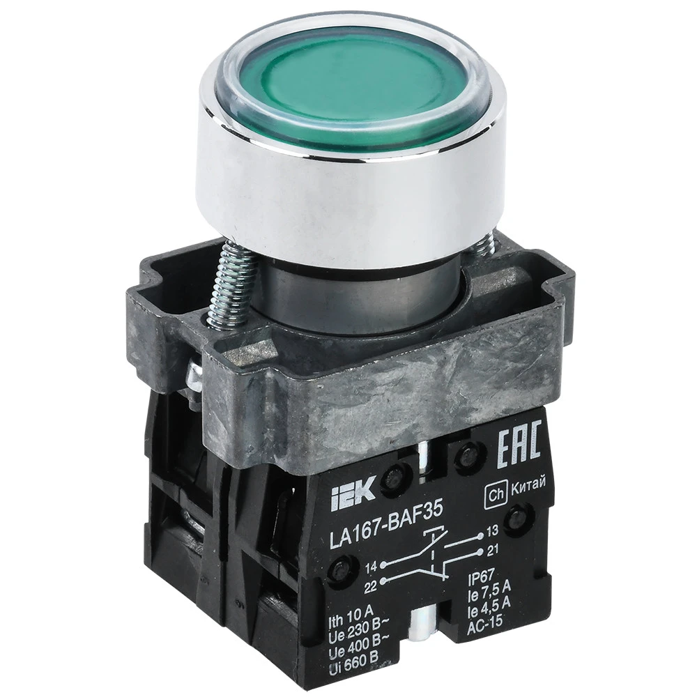 Кнопка LA167-BAF35 d=22мм 1з+1р зеленая BBT20-BAF35-3-22-67-K06 IEK