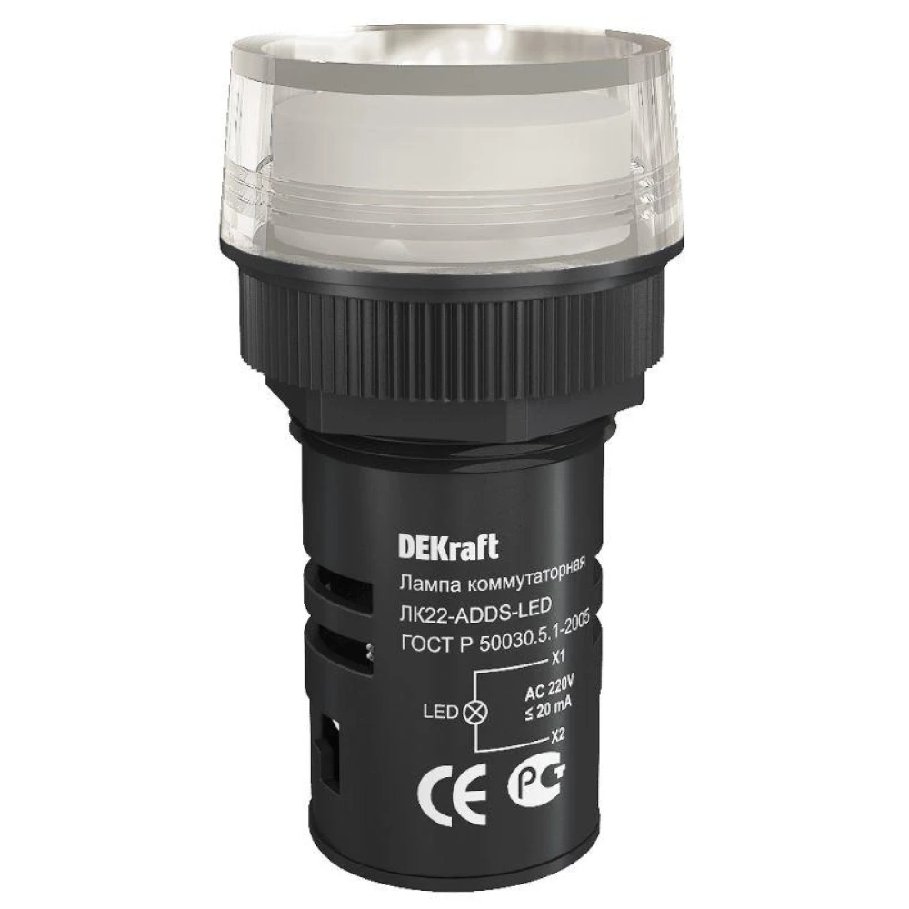 Лампа коммутационная ADDS ЛК-22 d22мм 220В бел. LED DEKraft 25001DEK