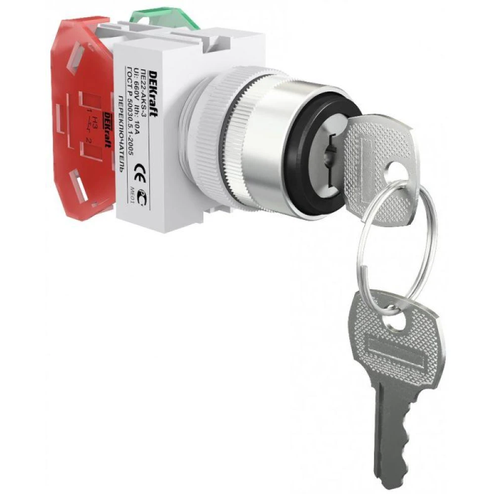 Переключатель на 3 положения I-O-II ПЕ-22 AKS с фиксацией с ключом DEKraft 25054DEK