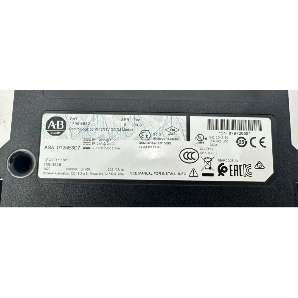Модуль дискретных входов 32 каналов 1756-IB32 производства Allen Bradley предназначен для интеграции в системы промышленной автоматизации. Устройство обеспечивает надежное считывание дискретных сигналов с 32 каналов, что позволяет эффективно контролировать состояние оборудования и технологических процессов. Корпус модуля имеет габариты 51 мм в глубину, 152 мм в ширину и 254 мм в высоту, что обеспечивает компактное размещение в шкафах управления. Модуль рассчитан на эксплуатацию в широком диапазоне температур от -40°C до +85°C, что гарантирует стабильную работу в различных климатических условиях. Изготовлен в США, соответствует высоким стандартам качества и надежности. В наличии на складе в городе Электрогорск (Будённого) 2 единицы. Закажите модуль 1756-IB32 для повышения эффективности и надежности ваших систем автоматизации.